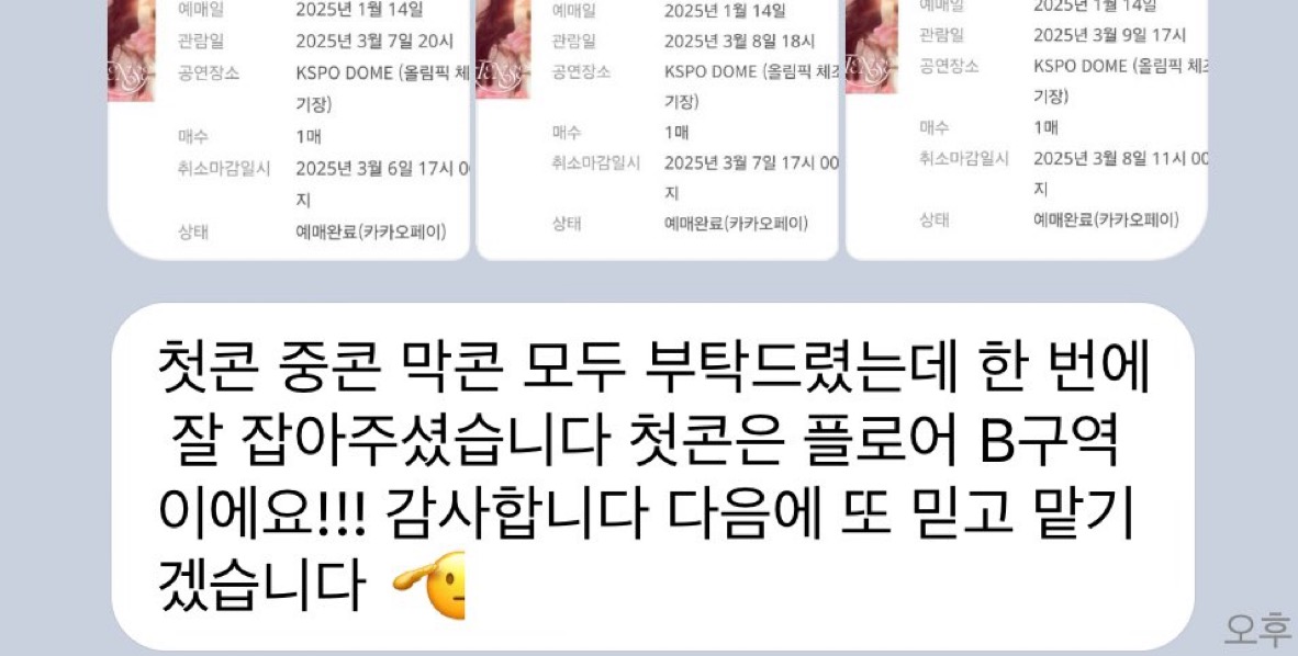 태연 콘서트 대리티켓팅 성공했습니다😆에스파 더보이즈 트레저 온유 투애니원 투바투 댈티도 진행중이니 편하게 문의주세요🍀더 많은 후기는 카테고리>트위터후기 참고바라🦫문의🤗https://ticketbara.shop