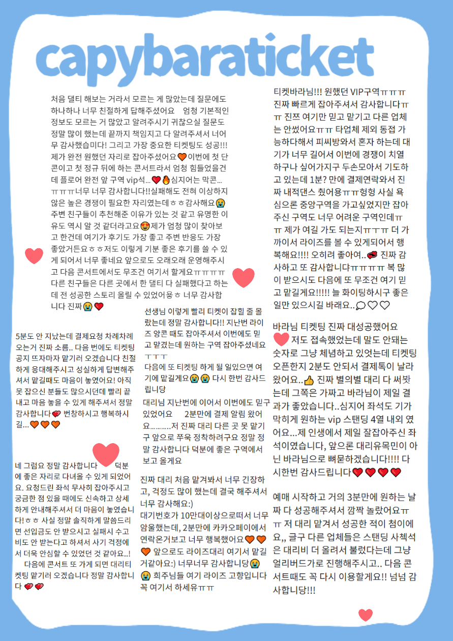 후기를 감사하게도 너무 알차게 주셔서 .. 🥹 편집하는데 오래걸렸습니다 🩵 감사합니다
