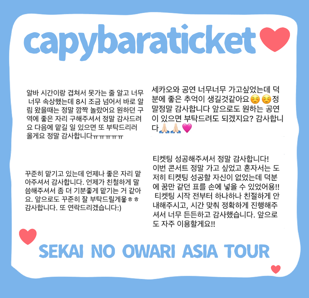 SEKAI NO OWARI ASIA TOUR 세카이노 오와리 대리티켓팅 성공경력