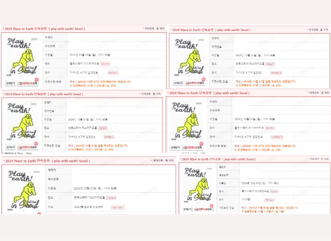 Wave to earth 단독 콘서트 대리티켓팅 신청자분 모두 100%전부성공했습니다 🤭